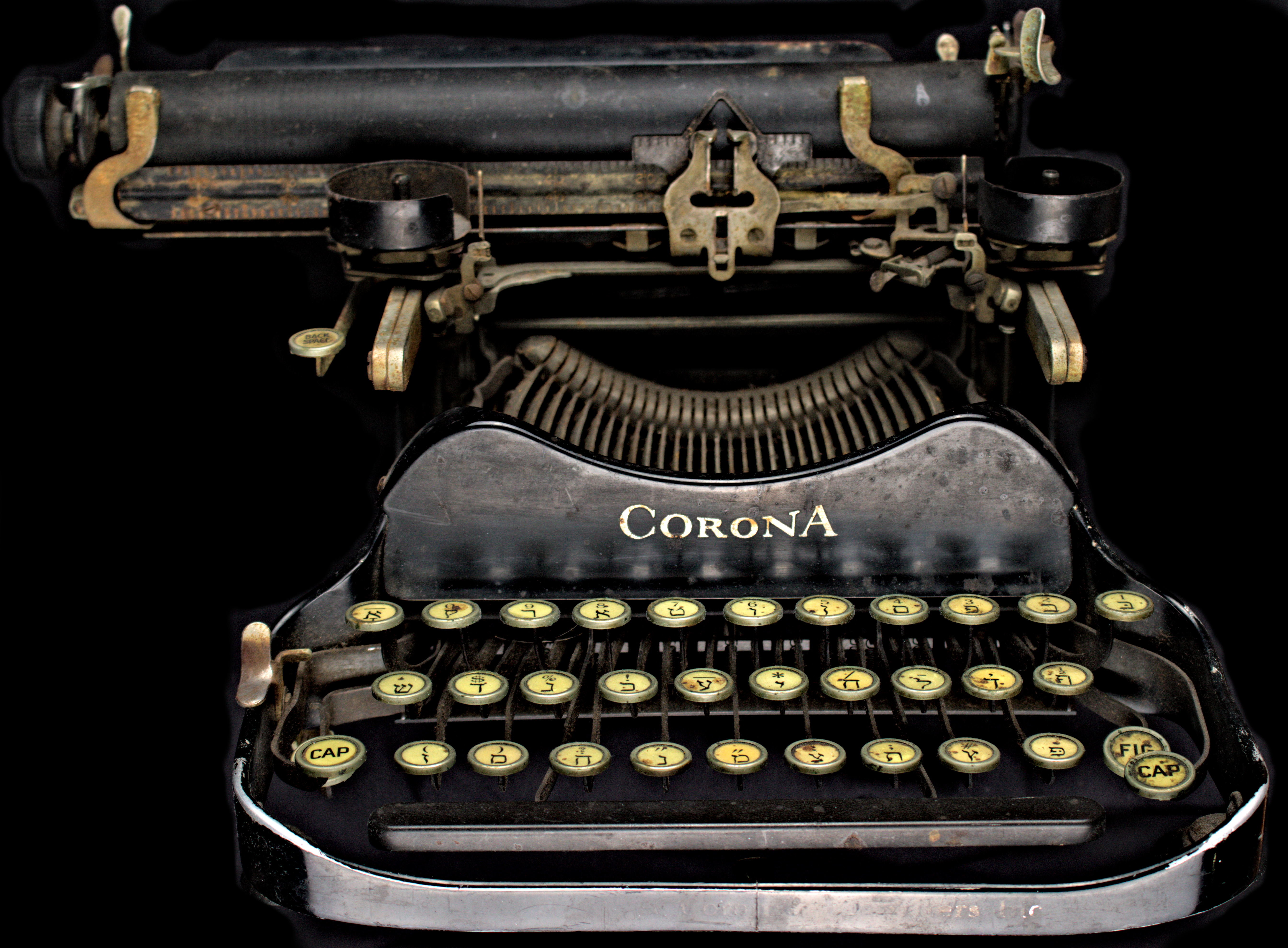 Our 2019 debut item for Artifact of the Month is this adorable Corona XC-R Yiddish typewriter. The serial number 640285 dates this typewriter to 1929, when Smith & Corona Typewriters, Inc. was manufacturing portable folding typewriters popular with journalists and home users. The company’s 1920s manual boasts that its product is “extremely simple in construction and operation, there being only 692 parts as opposed to 2,000 or 3,000 in the ordinary machine.”